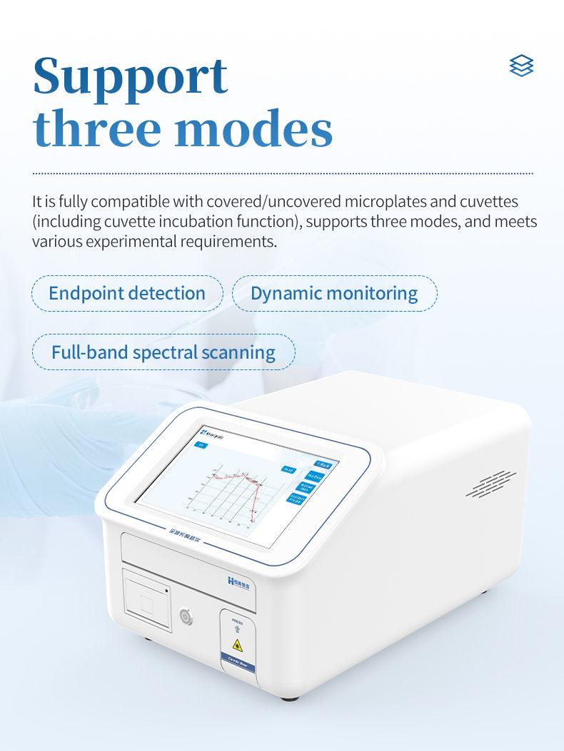 8. Supports endpoint detection, dynamic monitoring, and full band spectral scanning modes, compatible with covered/uncovered microplates and colorimetric dishes (including colorimetric dish incubation function);