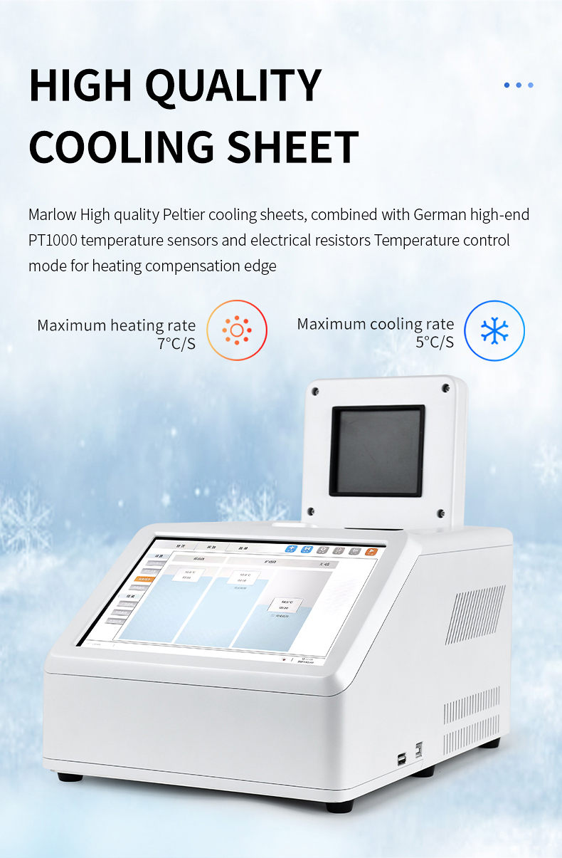 3. Marlow high-quality Peltier refrigeration chips, combined with Germany's high-end PT1000 temperature sensor and temperature control mode with electric resistance heating compensation edge, have a maximum heating rate of 6 ℃ and a maximum cooling rate of 5 ℃, greatly reducing experimental time.