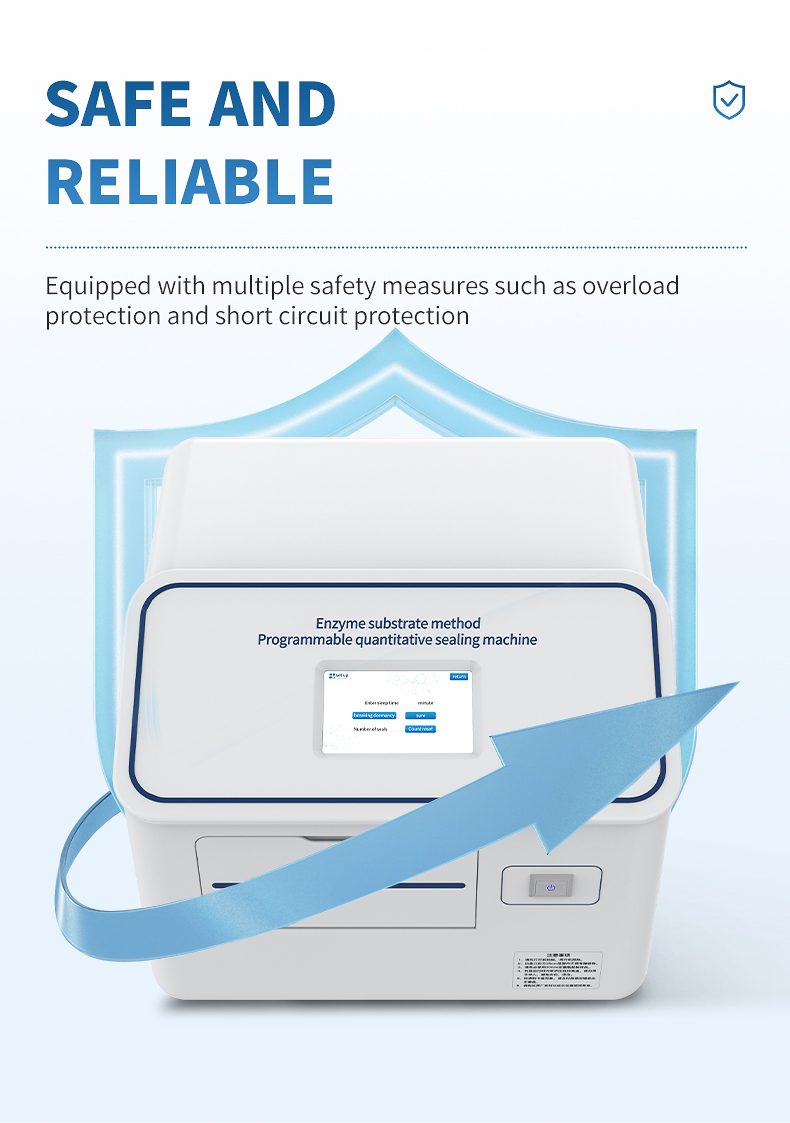 The program-controlled quantitative sealing machine is a specialized device designed to meet modern packaging production needs. It is driven by intelligent circuits and has a dedicated heating roller inside. It is specifically used for sealing 51 well and 97 well quantitative plates, and is used in conjunction with microbial detection reagents to provide a simple, fast, and accurate experimental plan for quantitative detection of total coliforms, fecal (heat-resistant) coliforms, and Escherichia coli; The 51 well quantitative disk and 97 well quantitative disk are semi-automatic quantitative methods designed based on the traditional Maximum Possible Number (MPN) statistical model, which can quantitatively detect water sample results. This method can replace and outperform traditional (membrane filtration, and multi tube fermentation) methods for detecting microorganisms in water.