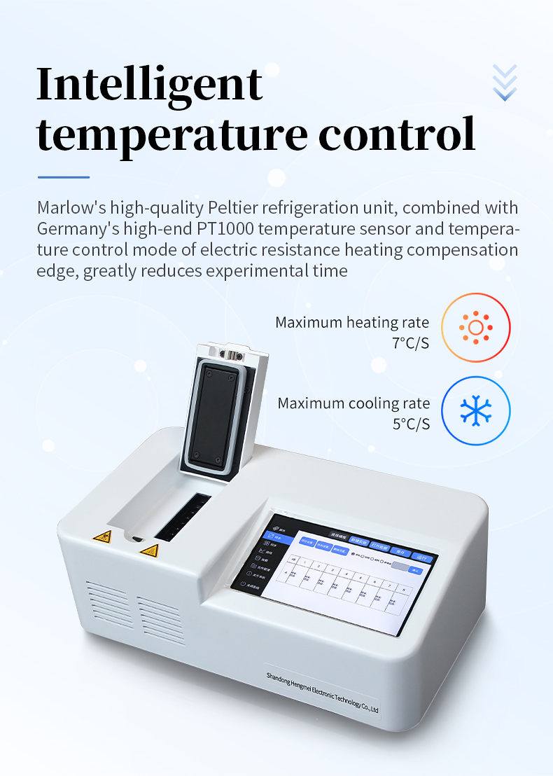 3. Marlow high-quality Peltier refrigeration chips, combined with Germany's high-end PT1000 temperature sensor and temperature control mode with electric resistance heating compensation edge, have a high heating rate of 7 ℃ and a high cooling rate of 5 ℃, greatly reducing experimental time.